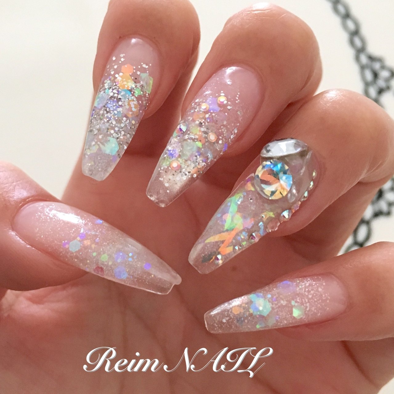 ネイルサロンmarch בטוויטר 心斎橋店 細川です 長さだしならではのクリアラメ 透明感たっぷりでキラキラネイル