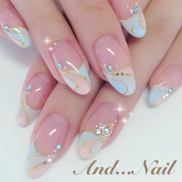 夏 フレンチ ブルー お客様 白川麻里 神戸アンドネイルのネイルデザイン No ネイルブック